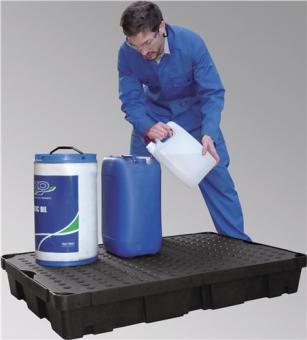 Auffangwanne 100l L1200xB800xH175mm PE m.PE-Rost · für Kleingebinde · für eine sichere und vorschriftsmäßige Lagerung · aus Polyethylen · beständig gegen Laugen, Öle und Säuren · stapelbar · rutschsichere Plattenoberfläche · konzipiert für Kombin| Breite | 800 mm |