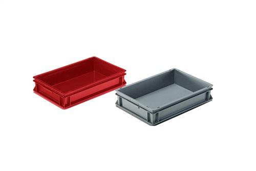 Details: Lagerbehälter L400xB300xH120mm - 8 ST, Ku.rot Seitenwände geschl.2 Griffmulden