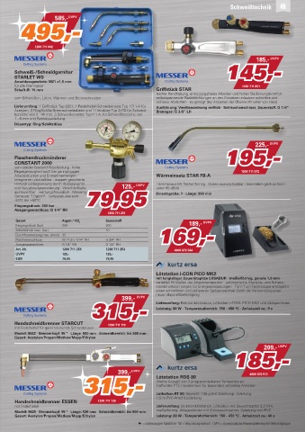 Gasart: Acetylen/Propan/Methan/Mapp/Ethylen Leistung: 80 W · Temperaturbereich: 150 - 450 °C · Anheizzeit ca.: 40 s