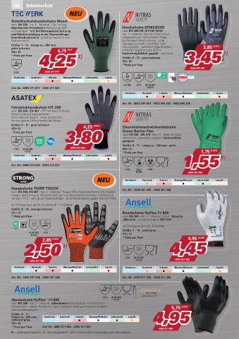 3,80 nach EN 388 · EN 374 · Kat. III · Material: Nitril,