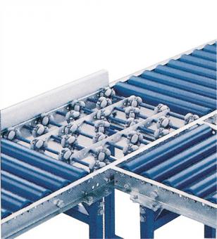 Allseitenröllchenbahnen Type AC 149 Gesamt-B.340mm Gerade 0,5m 100mm · zum rechtwinkligen Quertransport an Verteil-, Dreh- oder Ausschleusstellen von Rollen- und Röllchenbahnen · das Fördergut muss einen stabilen und glatten Unterboden haben und sollte stets mindestens auf 3 Röllchenachsen aufliegen · allseiten-Röllchenbahnen sind in der Bauform den Rollen- und Röllchenbahnen angepasst und können somit problemlos integriert werden · Bauform: U-Profil-Rahmen 20/70/20 mm, verzinkt. Allseiten-Röllchen Ø 48 mm aus Kunststoff, grau mit Gleitlagerung, Röllchen von Achse zu Achse versetzt angeordnet Hinweis: Das Fördergut muss einen formstabilen, flächigen, geschlossenen und sauberen Boden haben. · Durchgang hochklappbar für Rollen- und Röllchenbahnen. Die Standard-Länge des Durchganges beträgt 1 m. Der Preis ermittelt sich aus dem Preis für das entsprechende Bahnelement 1 m zuzüglich des Mehrpreises für den Durchgang (Klappmechanismus). · Weitere technische Eigenschaften Größe: Gerade 0,5 m · Gesamtbreite: 340mm| Gesamtbreite | 340 mm |