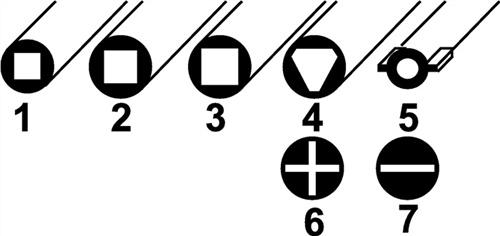 · Funktionen:1. Innenvierkant 5 mm2. Innenvierkant 6 mm3. Innenvierkant 7 - 8 mm4. Innendreikant 9 mm5. Doppelbart 3 - 5 mm6./7. PH Gr. 2 / Schlitz 7 mmund Kunststoffadapter für Bits 6,3 mm (1/4”)
