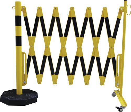Details: Sperrpfosten L4000xH1000mm - 1 ST, m.Scherengitter u.mobilem Standfuß gelb/schwarz