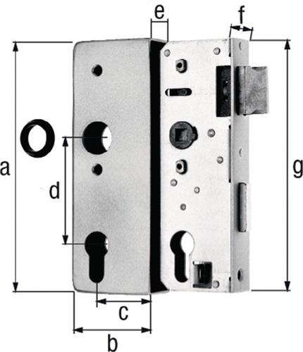 Details: Schlosskasten DIN L/R Maß - 1 ST, A170xB60xC40mm Maß E 30mm Dornm.40mm GAH