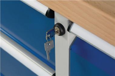 Werkbank V B2000xT700xH840mm Universalplatte lichtgrau enzianblau 6 Schubl.BD zurückgesetzt ANKE