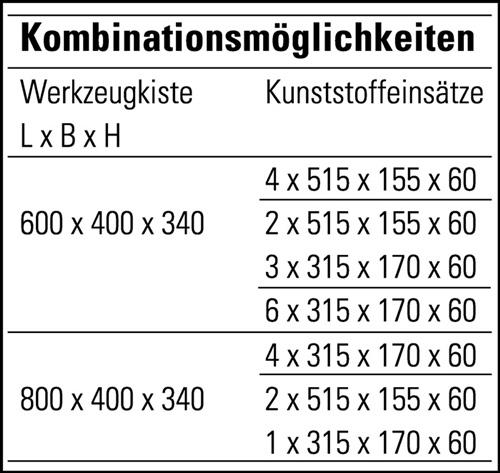 Details: Werkzeugkiste L600xB400xH340mm - 1 ST, 60l m.Panzerüberfalle u.Stapelecken